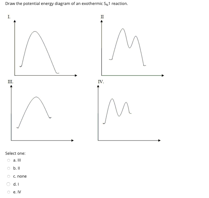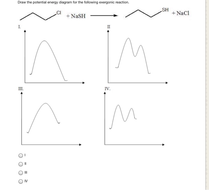 Solved 1. Draw a potential energy diagram for i) an ... 1. Draw a potential energy diagram for i) an exothermic and ii) and endothermic reaction. Label the activation energy for the forward reaction and the enthalpy change (ΔH) of the forward reaction. Show how a catalyst affects the curve. Question: 1. Draw a potential energy diagram for i) an exothermic and ii) and endothermic reaction.