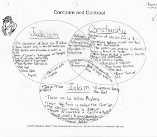 Similarities and Differences between Christianity, Islam ... A Venn Diagram showing Similarities and Differences between Christianity, Islam, Judaism. You can edit this Venn Diagram using Creately diagramming tool and include in your report/presentation/website.