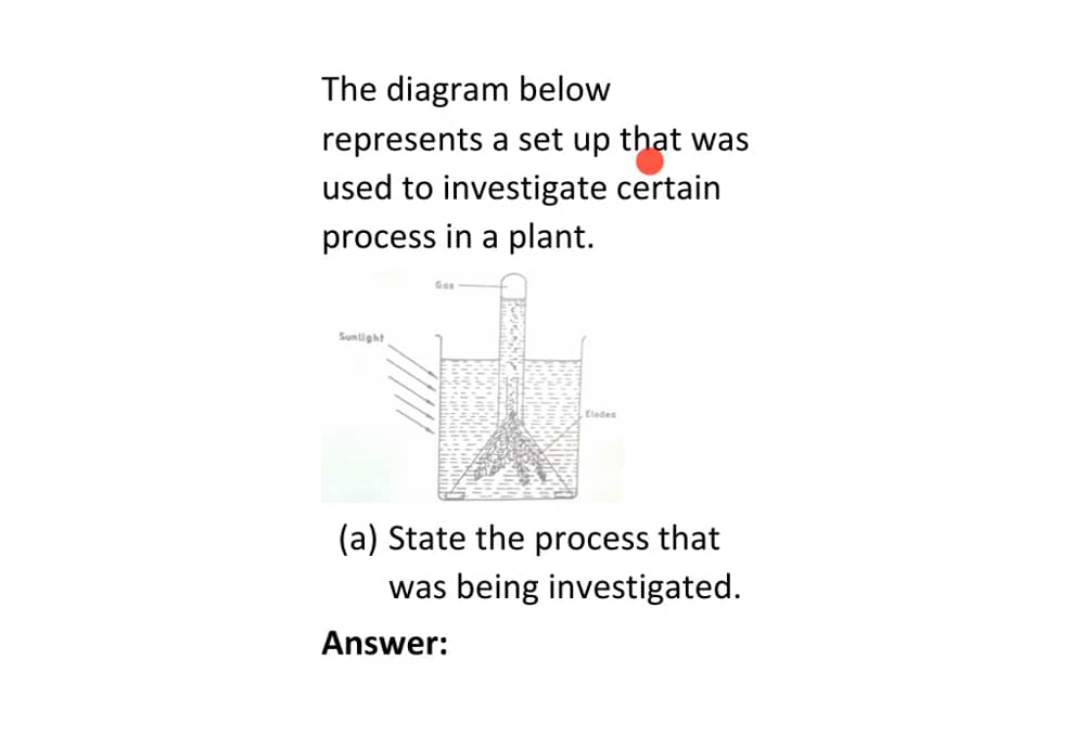The diagram below represents a process in plants. (i) Name the physiological process depicted in the diagram. Why was oil added to the water ? (ii) when placed in bright sunlight for four hours, what do you observe with regard to the initial and final weight of the plant ?